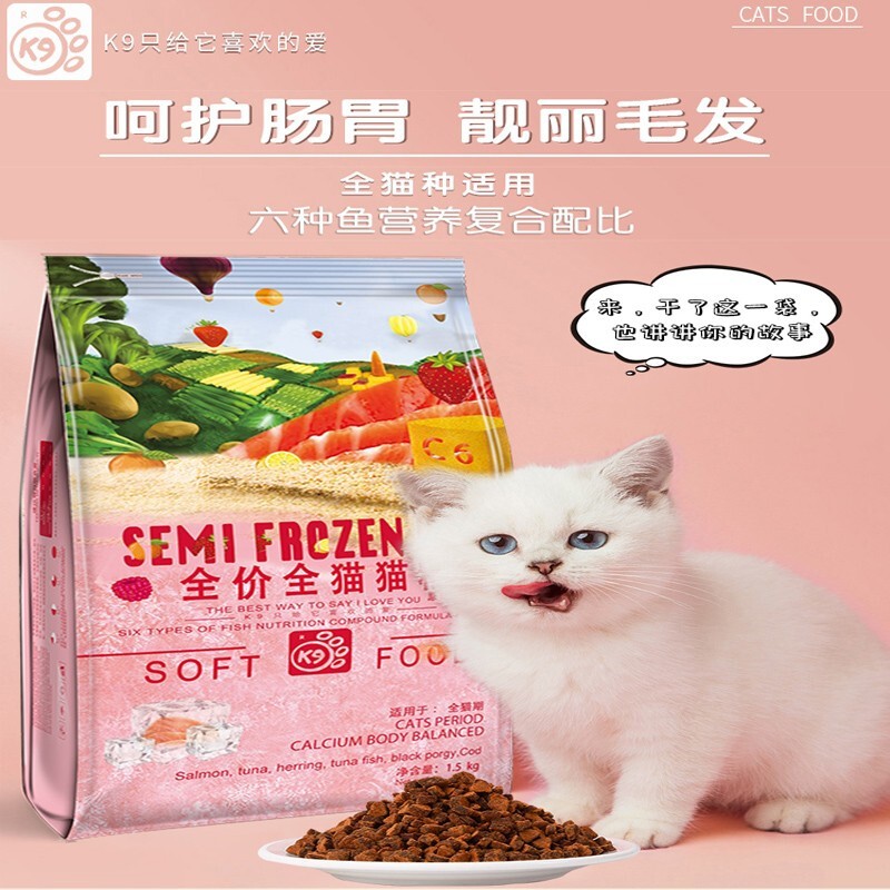 K9猫粮原味半冻干软粮 无谷猫主粮鱼肉幼猫粮孕猫成猫粮 宠物主粮全猫期通用呵护肠道亮毛发猫粮 C6全猫粮通用全价40g