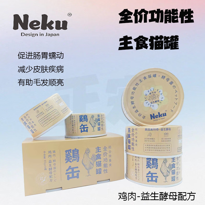 呢酷(NEKU)全价功能性主食猫罐头鸡肉味宠物罐头营养增肥美毛补水肠道调理 益生酵母配方 85g/罐 4罐