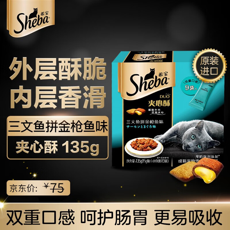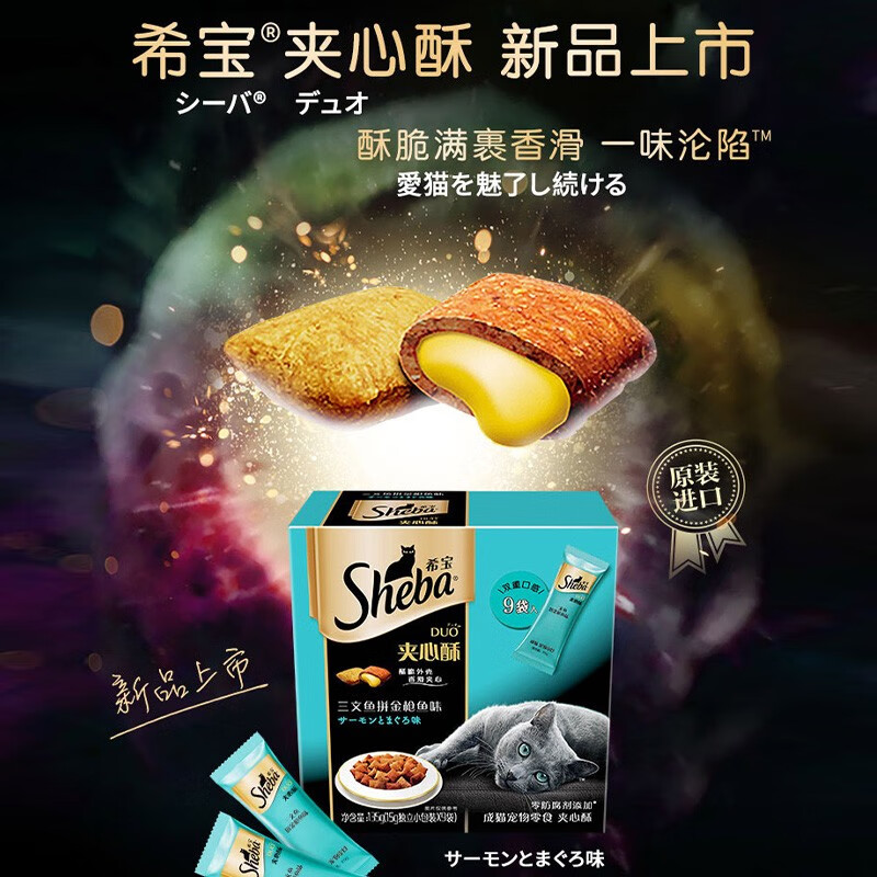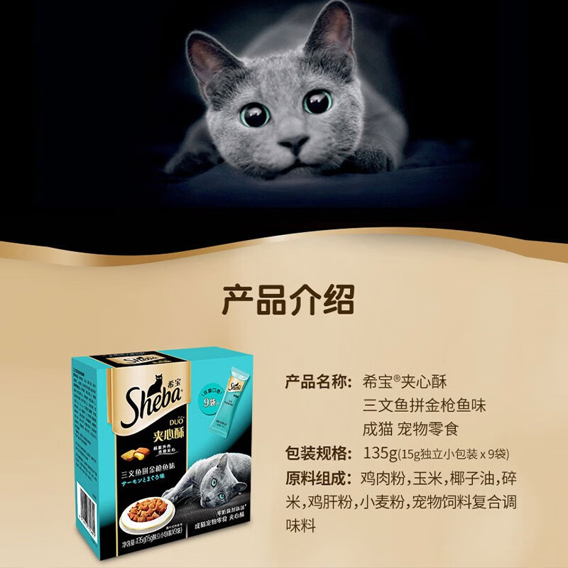 希宝(Sheba) 猫零食成猫夹心酥饼干 三文鱼拼金枪鱼味135g