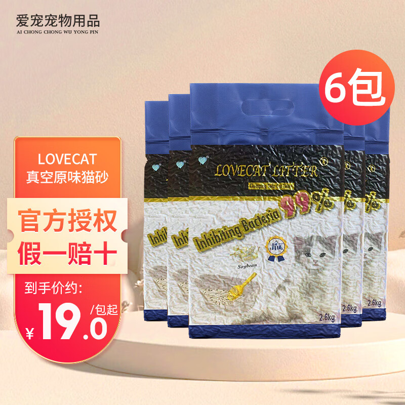 爱宠爱猫猫砂 love cat猫砂豆腐猫砂原味绿茶植物猫砂除臭易结团可冲马桶 【新款】原味豆腐猫砂 5.2斤*6包