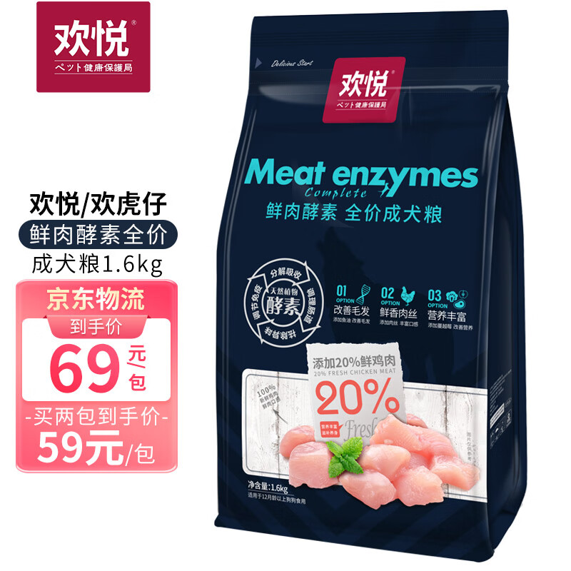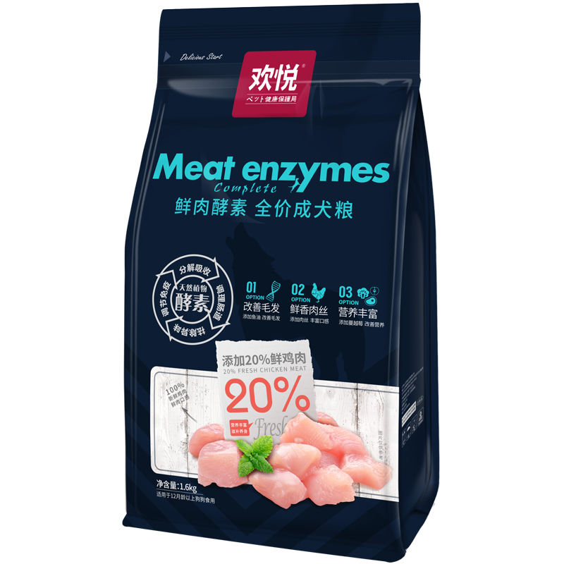 欢悦\/欢虎仔狗粮 鲜肉酵素 全价成犬粮1.6kg
