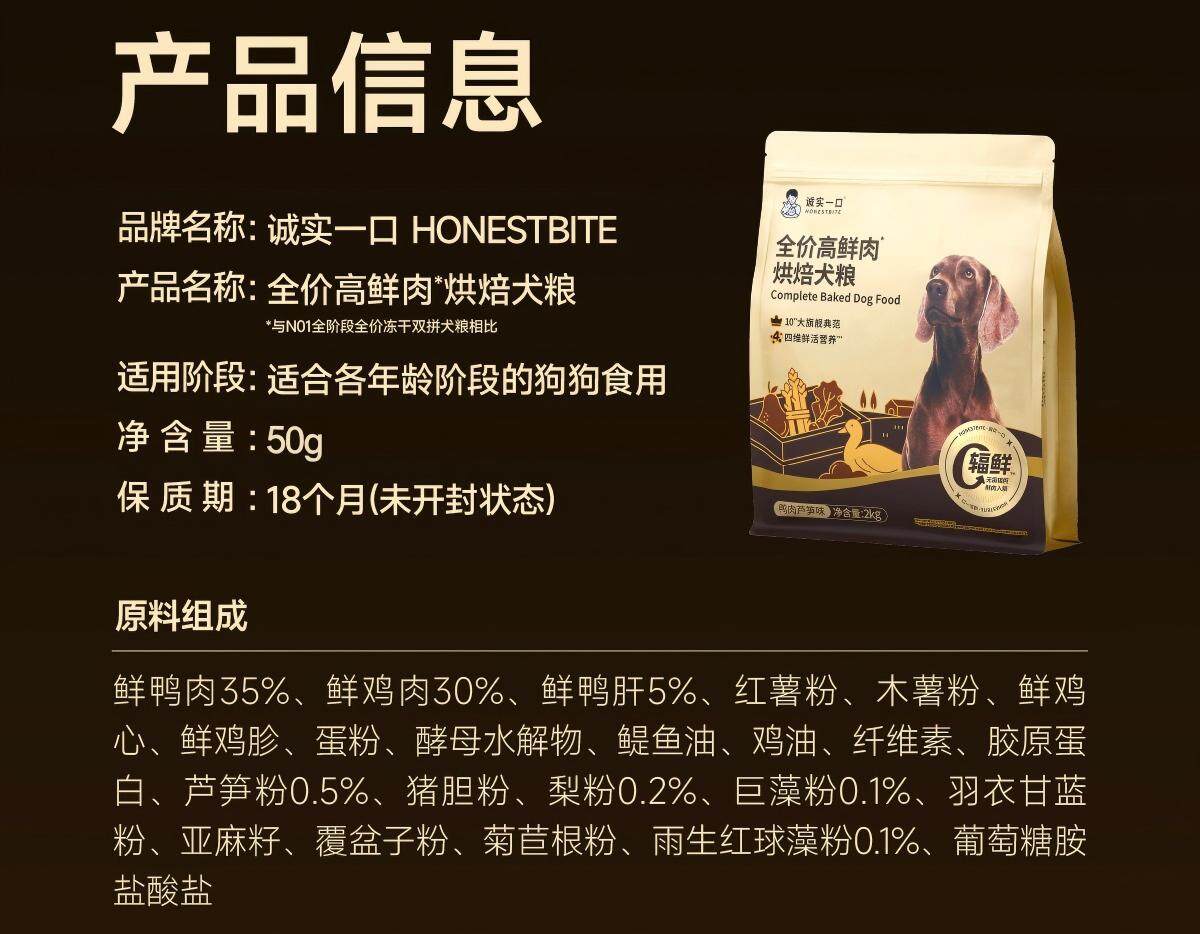 诚实一口 黑金全价高鲜肉烘焙犬粮2kg