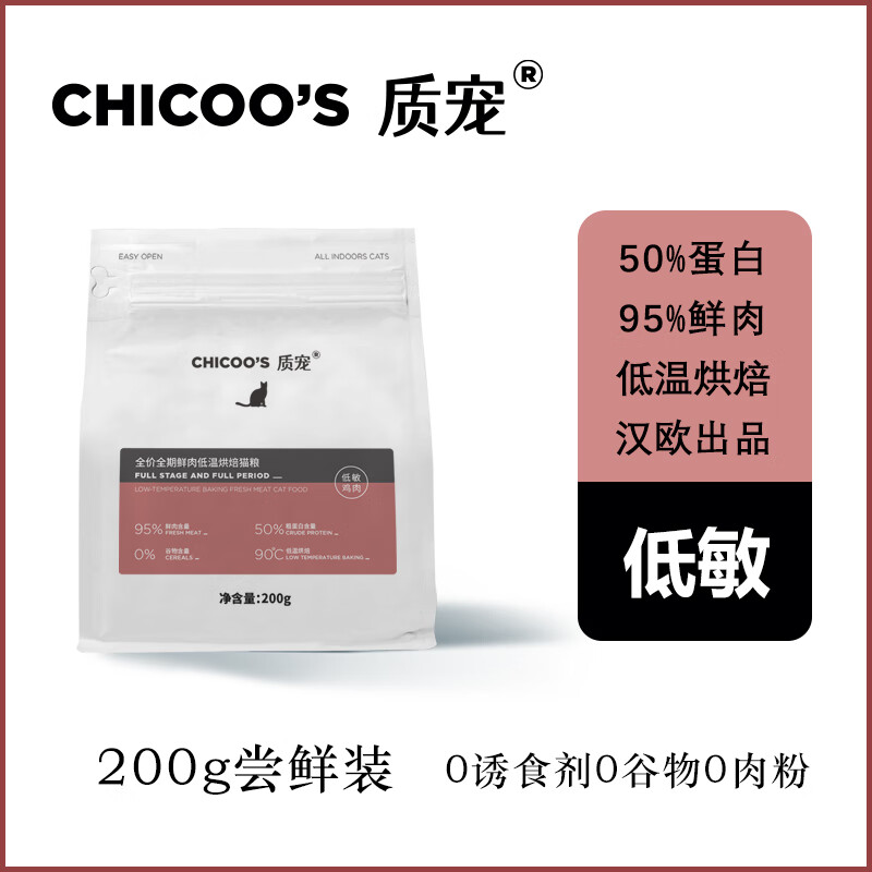 质宠C50 全价低温烘焙猫粮95%鲜肉低敏无谷猫粮50%高蛋白幼猫成猫粮 【尝鲜】C50烘焙猫粮 200g