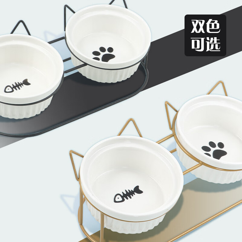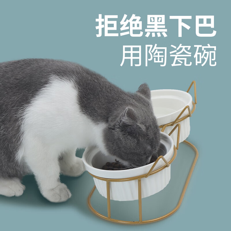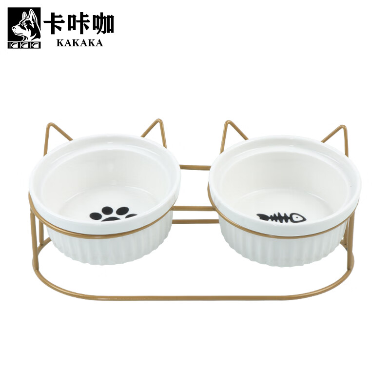 卡咔咖(kakaka)猫碗陶瓷猫食盆猫粮碗宠物碗双碗15°护颈猫盆狗碗猫饭碗猫粮盆