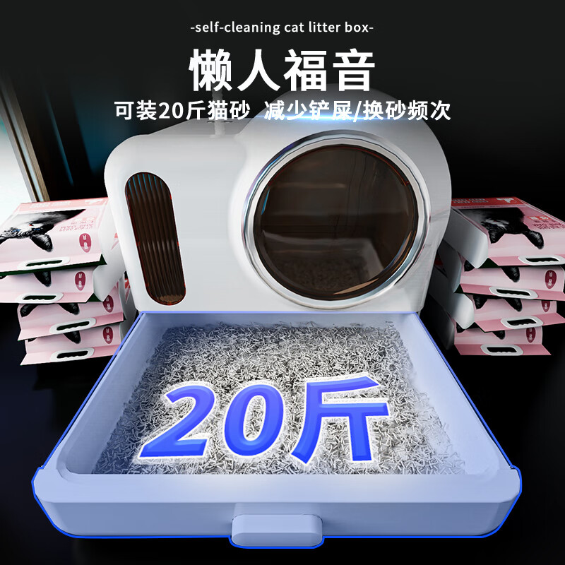 蔻丝新风电动智能猫砂盆超大号全自动封闭式防臭除臭猫厕所猫咪用品白
