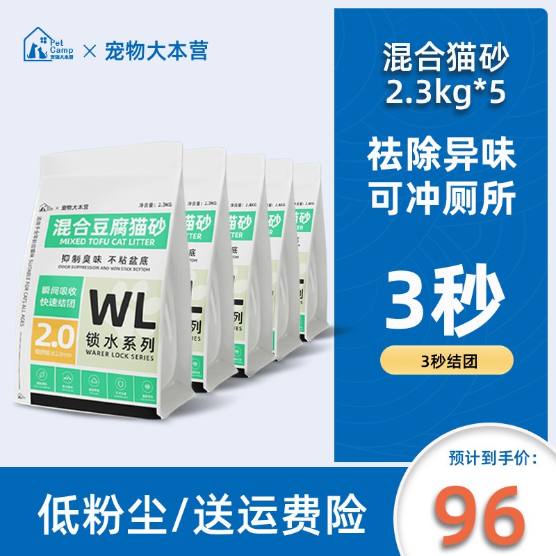 宠物大本营2.3KG原味混合豆腐猫砂2.0mm颗粒低尘易结团除臭吸水猫砂可冲厕所 混合豆腐猫砂2.0mm颗粒*5