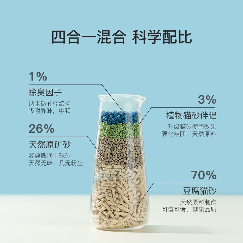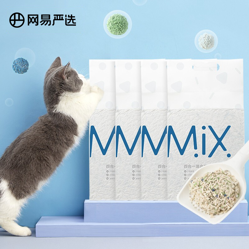 网易严选4合1豆腐膨润土混合猫砂三重除臭高效结团无尘猫咪用品2.5kg*4包