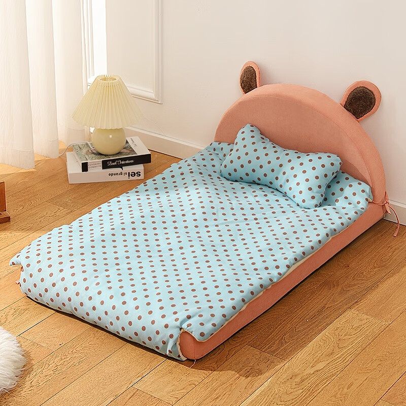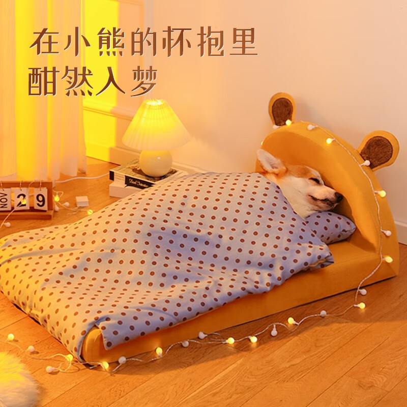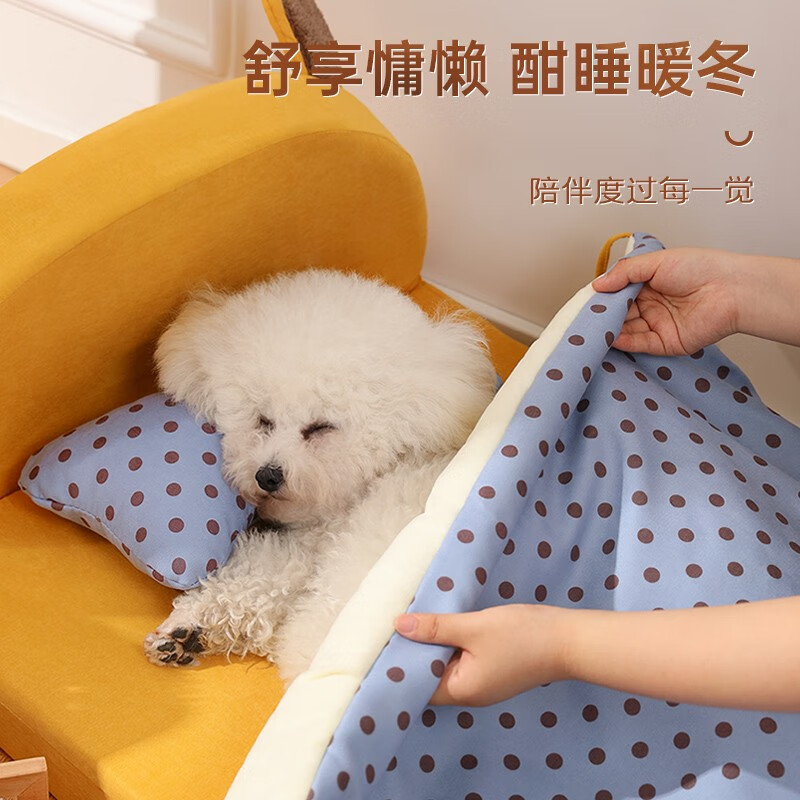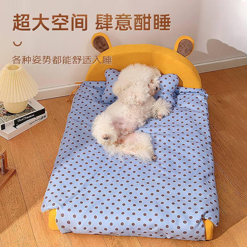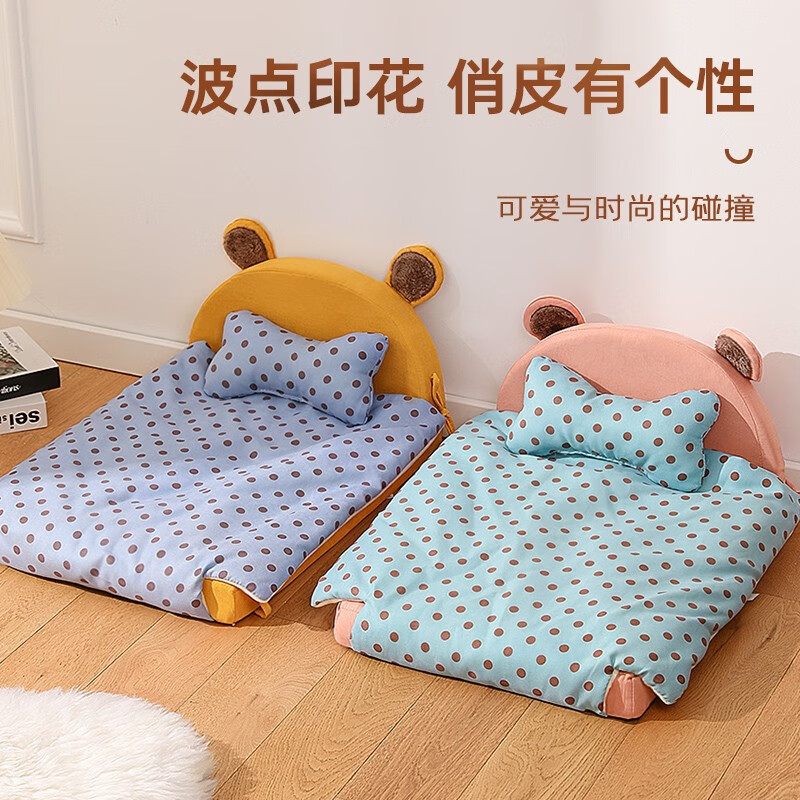 Kimpets狗窝冬季保暖狗狗床四季通用耐磨可拆洗狗垫猫咪睡觉宠物床冬天 波点粉色(床垫 被子 枕头) XL(建议体重35斤之内)