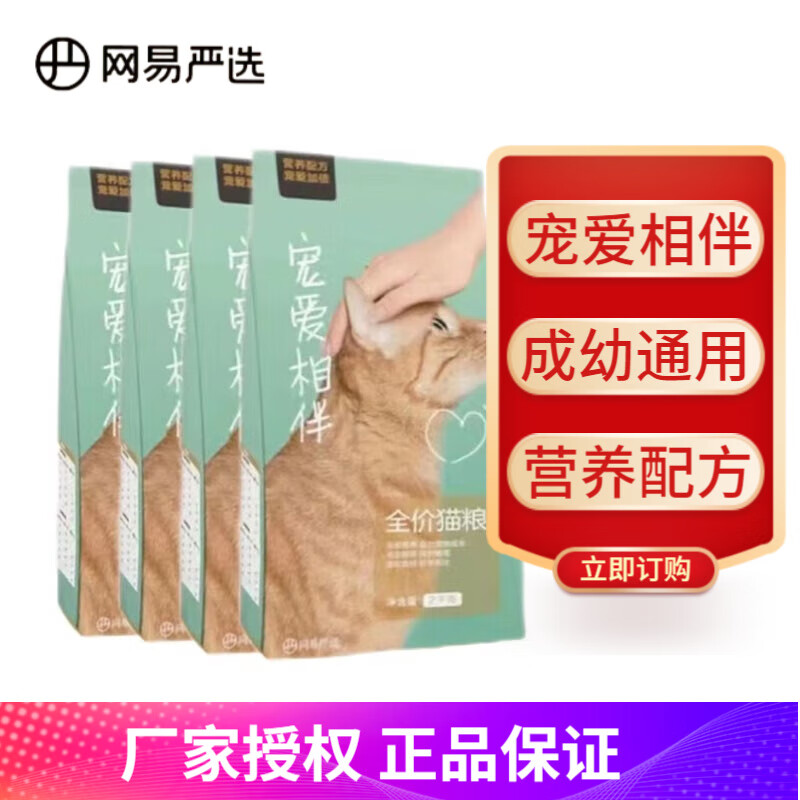 网易严选宠爱相伴猫粮 宠物全价主粮成猫幼猫猫咪 宠爱相伴猫粮7.2kg(1.8kg*4包)