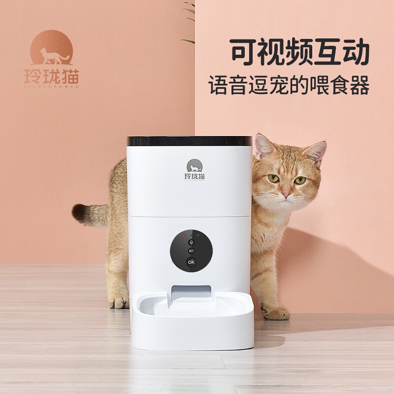 玲珑猫 宠物智能自动喂食器狗狗猫咪定量定时猫粮投喂机宠物喂食机 大白6L-手机版