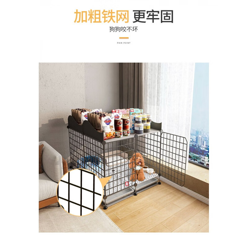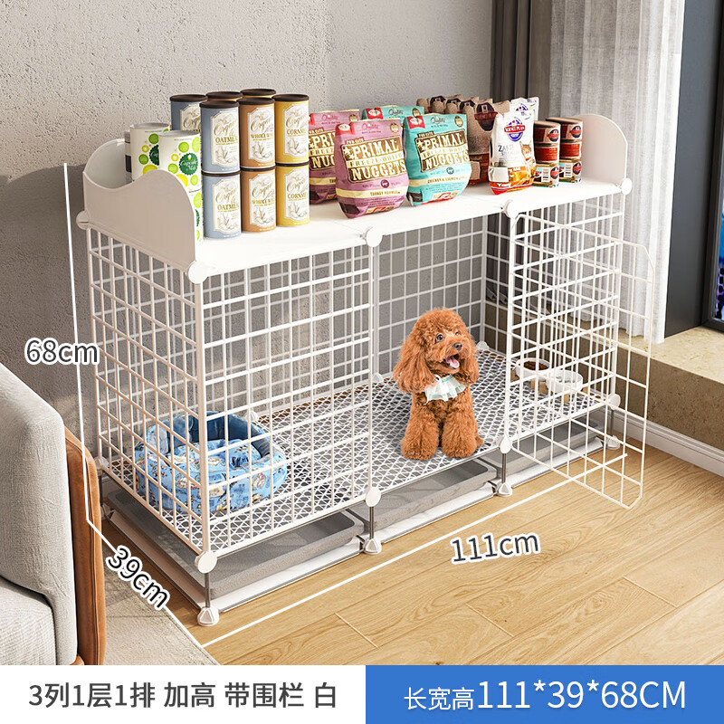 皆百福狗笼子小型犬家用带厕所分离室内博美泰迪柯基狗屋窝狗狗围栏宠物 111*39*68加高_带围栏 豪华款:饮食一体狗碗 狗窝 防卡脚垫 加