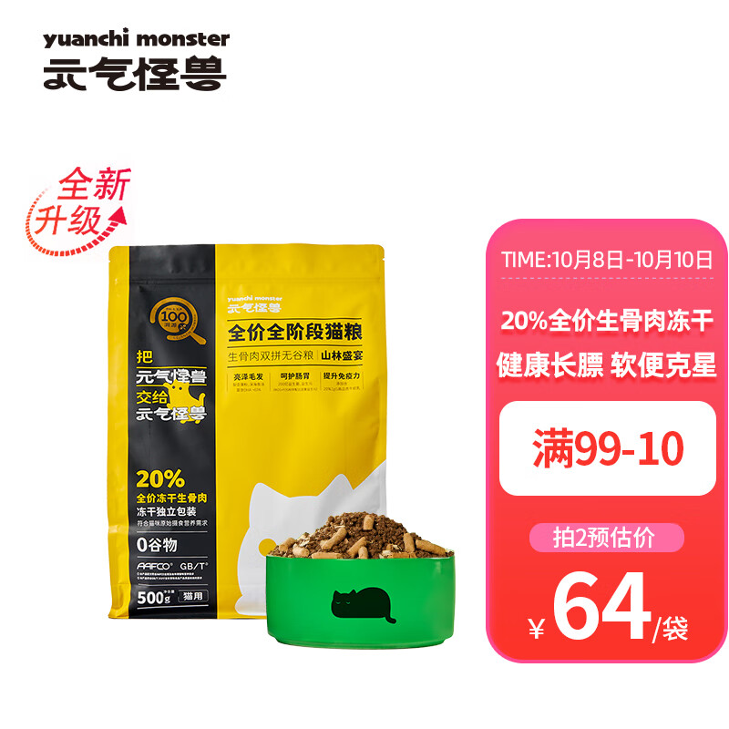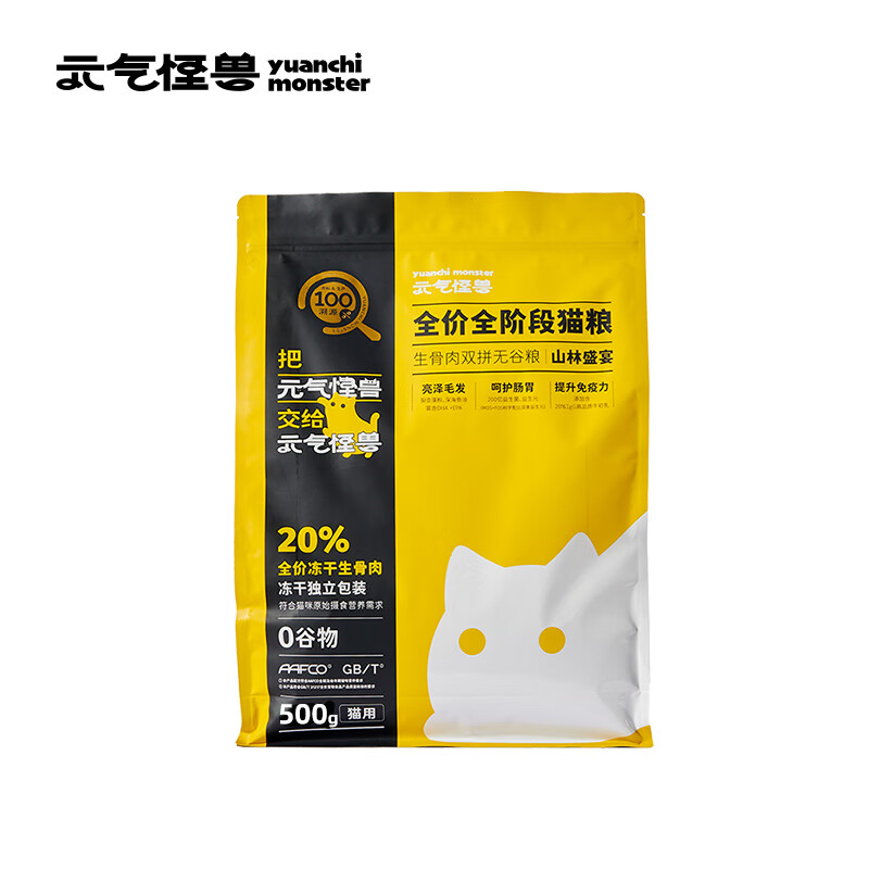 元气怪兽 冻干双拼全价猫主粮鸡肉味山林盛宴500g*1袋 无谷主食猫粮幼猫成猫通用粮