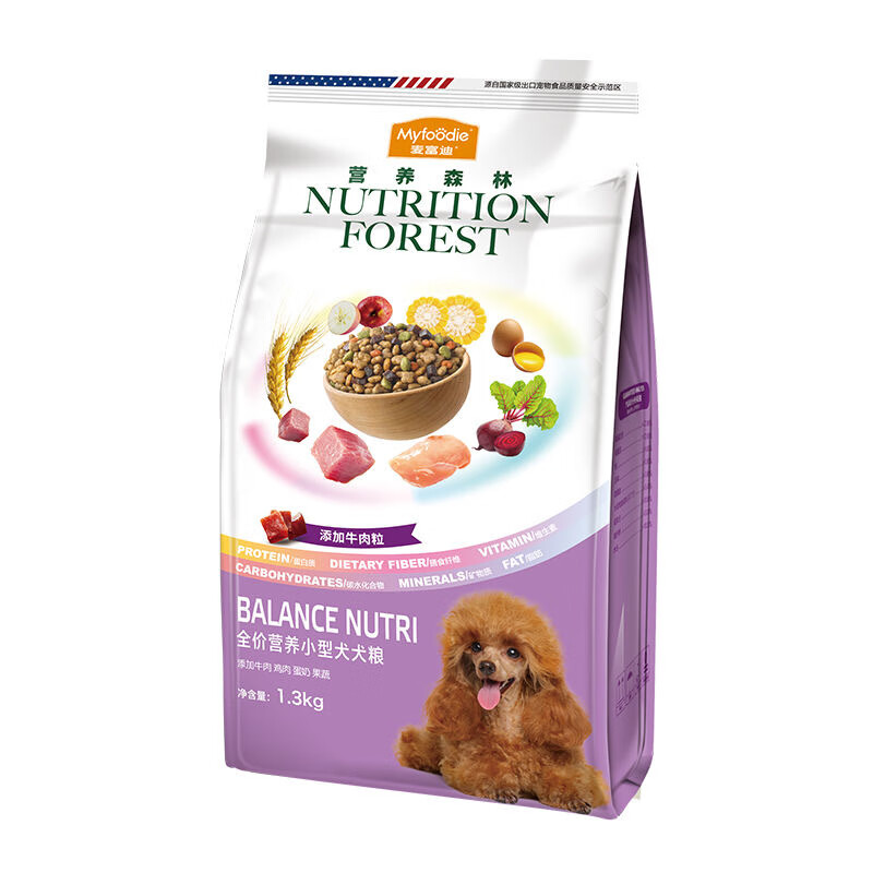 麦富迪(Myfoodie)麦富迪(MYFOODIE)麦富迪狗粮1.3kg 泰迪贵宾通用型比熊博美雪纳 营养森林添加牛肉粒1.3kg一袋