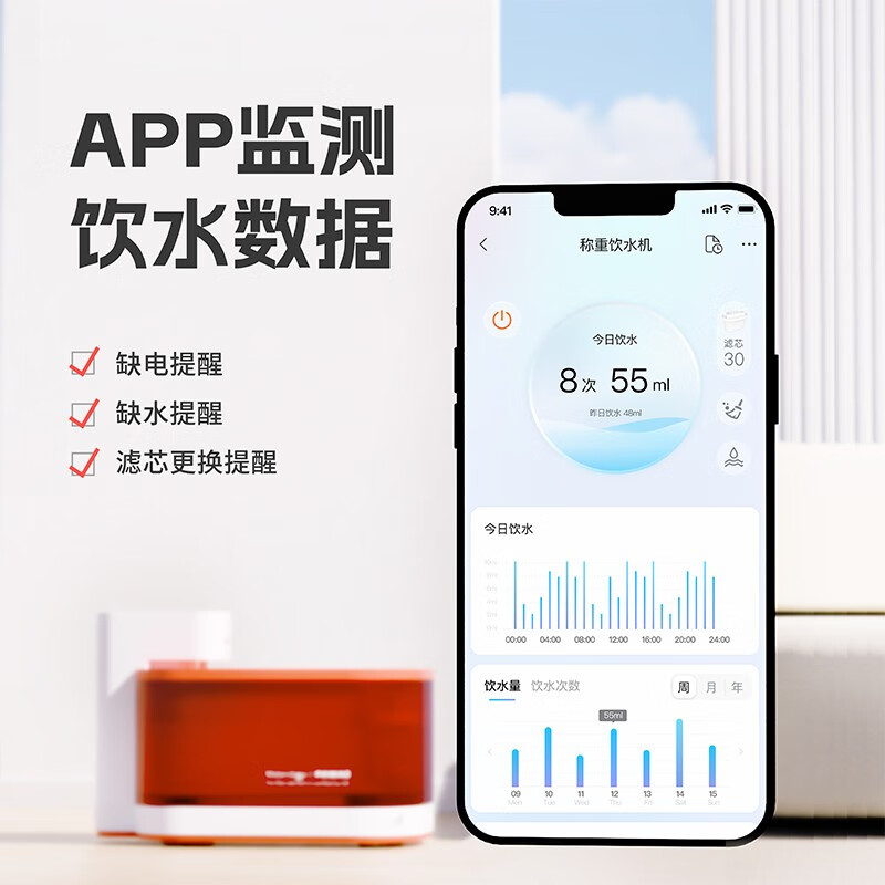 PAWAII怡爪 宠物饮水机 猫咪饮水机 不插电流动水 8重过滤 手机监测 红色 容量-2L-建议大型犬