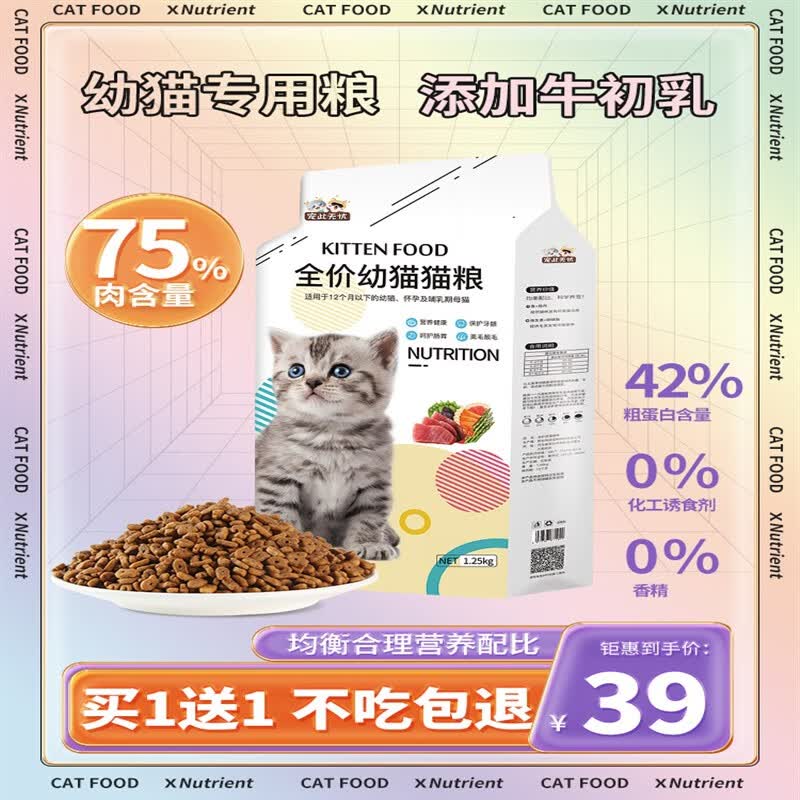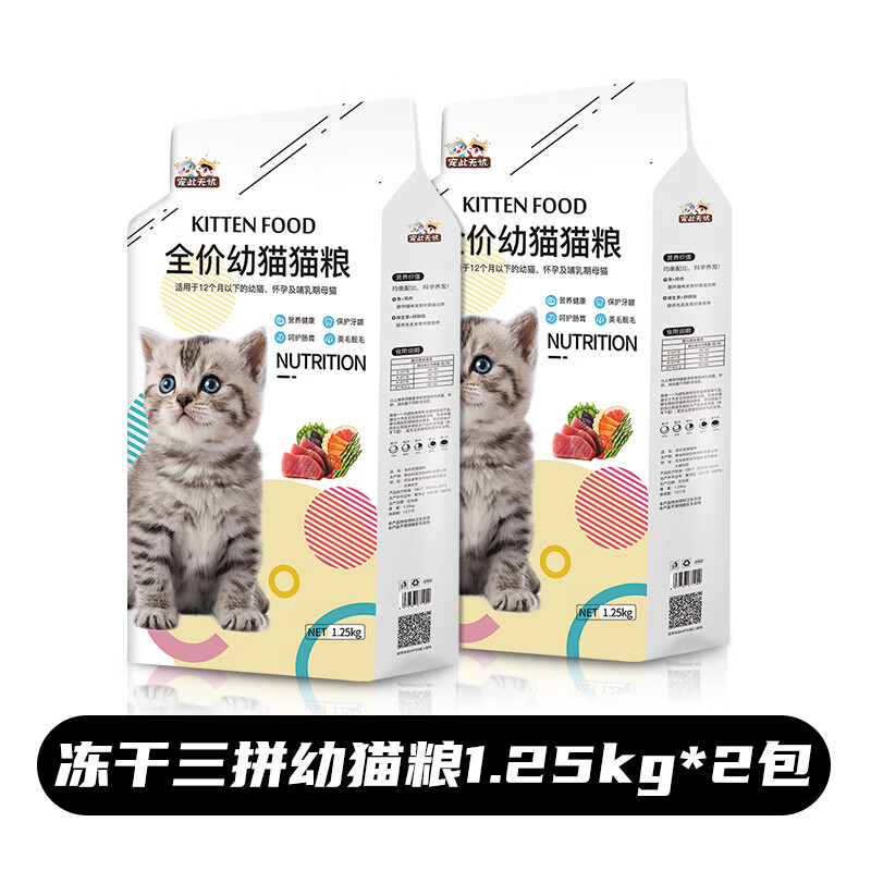 瓜洲牧猫粮幼猫专用一到三月奶猫二个月猫奶糕四到十二月小猫冻干猫粮 实发2包 共5/斤冻干幼猫粮添加 克重以上述选项为准
