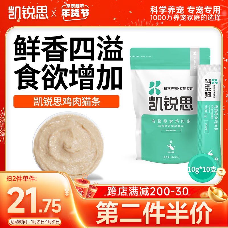凯锐思 猫咪零食鸡肉条奶幼猫零食鸡胸肉罐头增肥发腮食品罐头湿粮10支