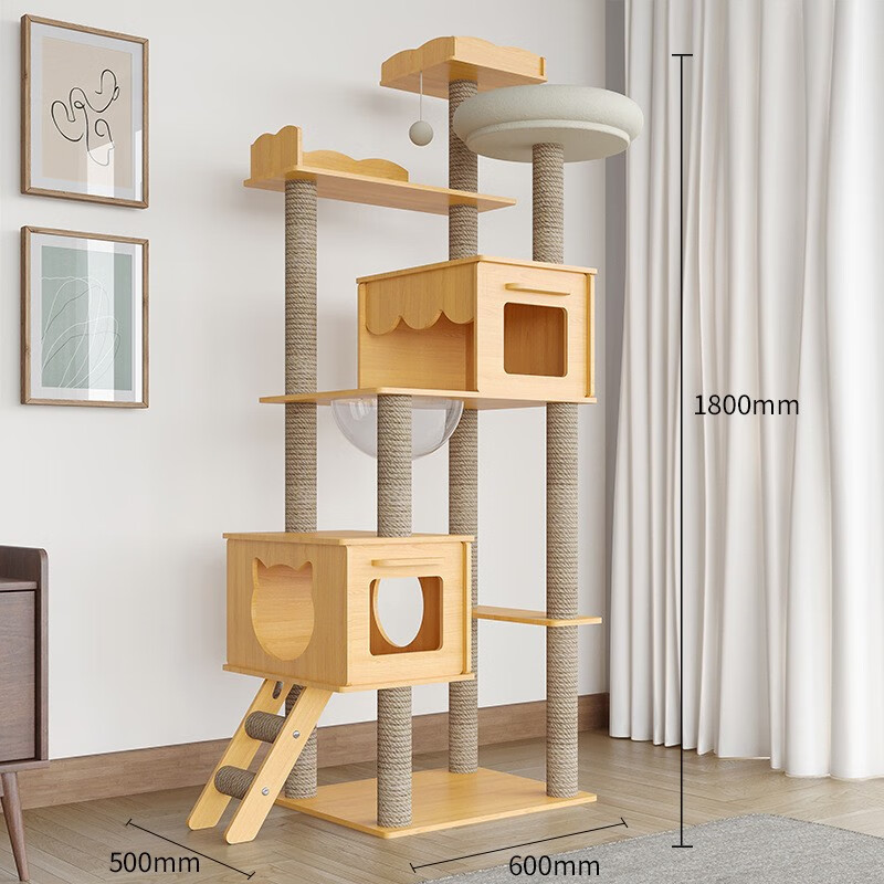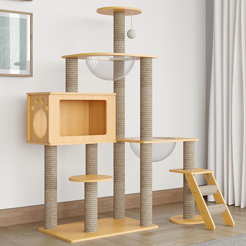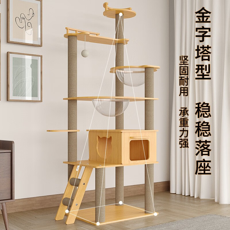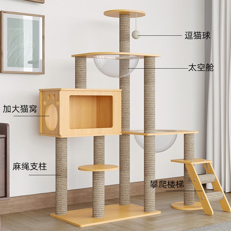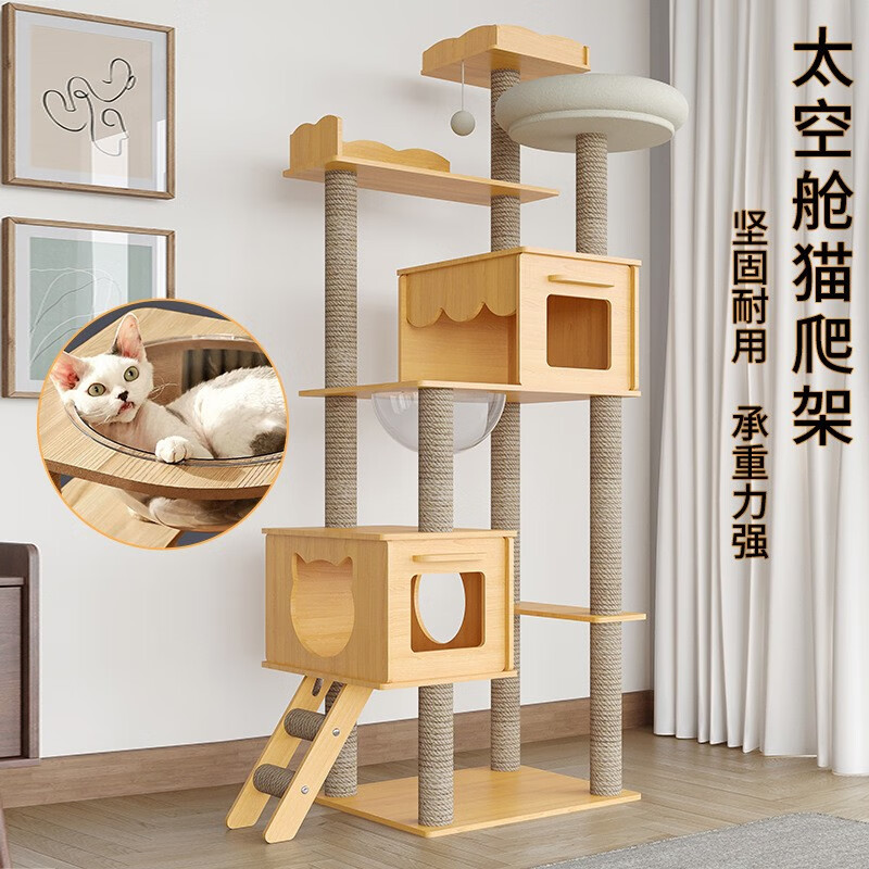 猫爬架 猫窝猫树一体猫架猫抓架实木通天柱跳台太空舱猫咪用品大全猫玩具猫抓板猫爬树猫抓板猫跳台四季通用 梦幻天宫别墅
