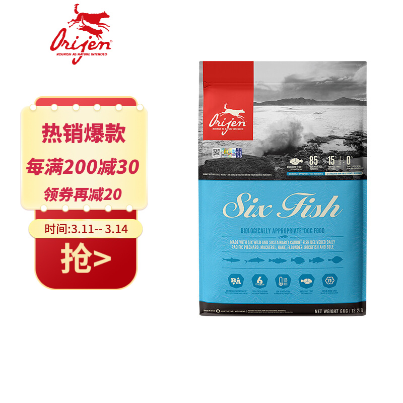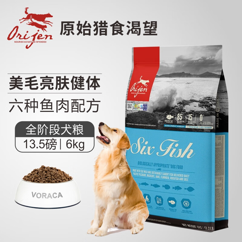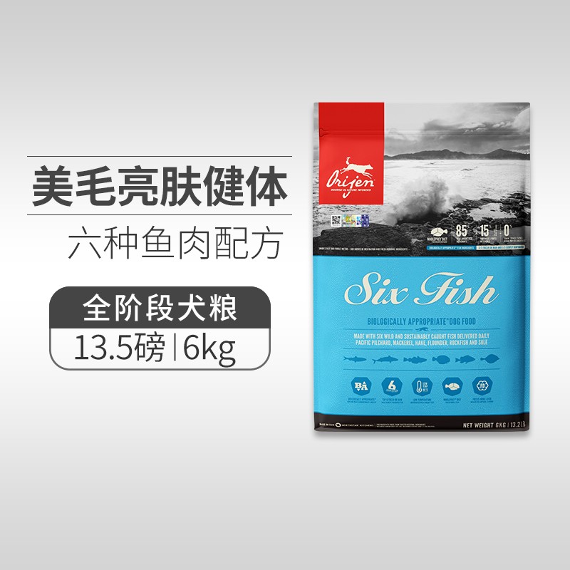 原始猎食渴望(ORIJEN)六种鱼犬粮进口幼犬成犬天然无谷全价通用狗粮海洋盛宴 六种鱼犬粮 6.0kg