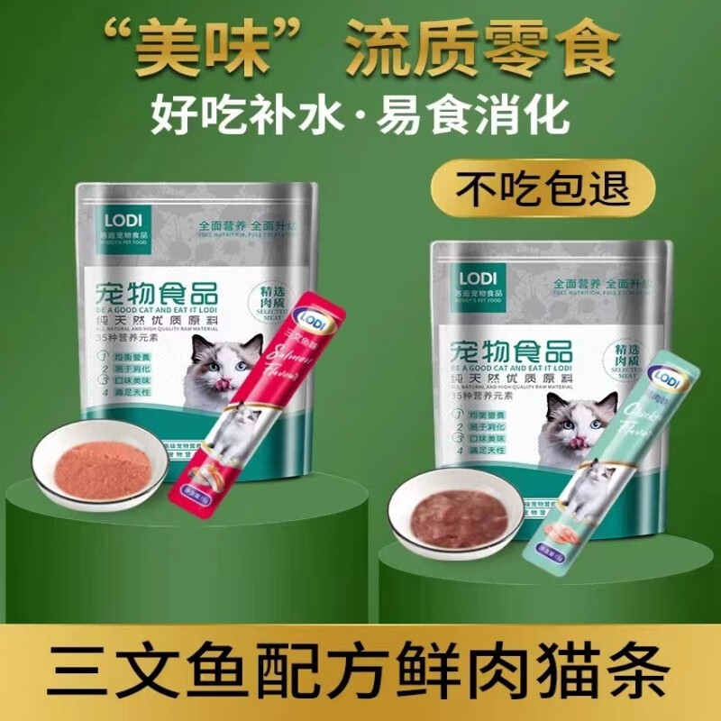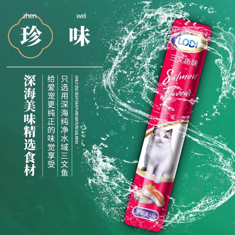 LODI猫咪食猫条鸡鱼幼猫成猫孕猫增肥发腮专用宠物营养食品补钙湿粮 三文鱼口味 【1包】15条