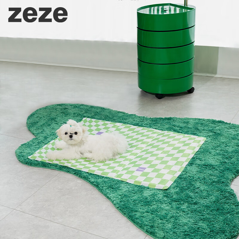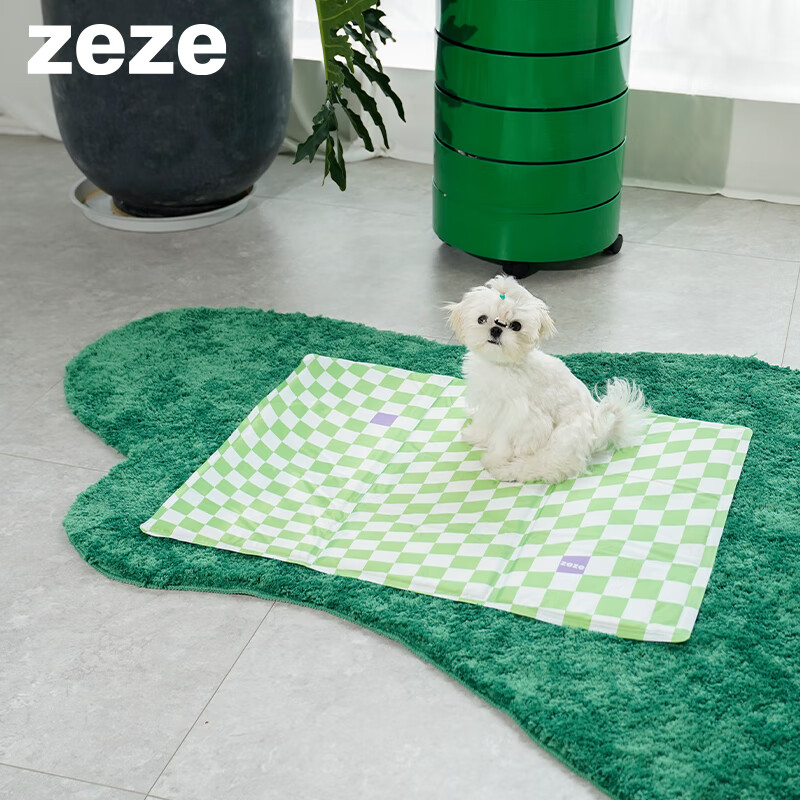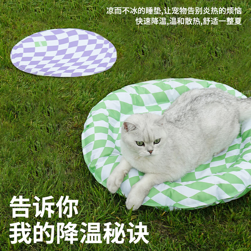 ZEZE冰窝垫狗狗冰床猫窝猫咪睡觉用夏季睡垫夏天降温神器 棋盘格冰窝-绿白格纹 整块冰垫 散热均匀 不跑胶