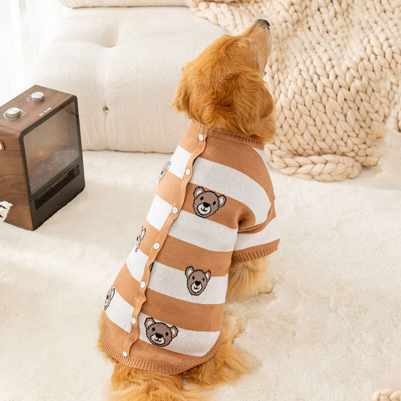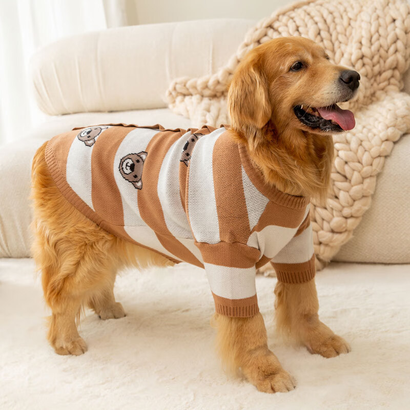 嬉皮狗(hipidog)宠物小熊提花针织大狗毛衣防掉毛保暖衣服金毛萨摩耶大型犬秋冬季 卡其色 6XL(建议体重50-60斤)