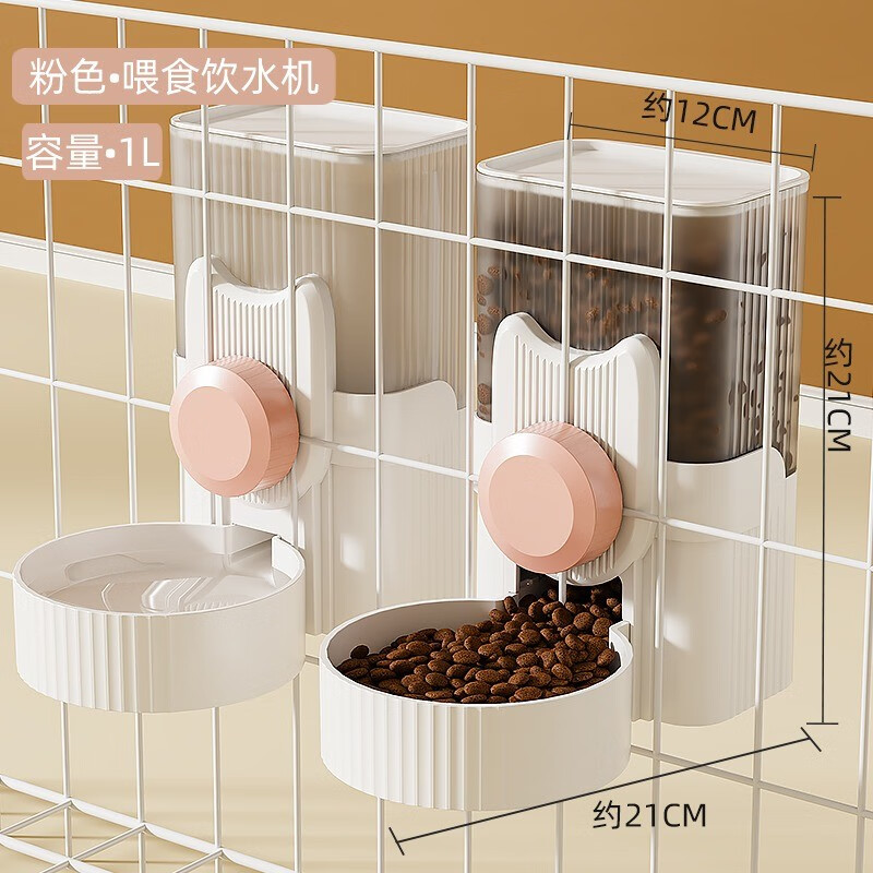 汤琪狗狗挂式饮水机猫咪喝水器不湿嘴自动喂食器悬挂笼子水壶饮水器 粉色喂食器1000ML