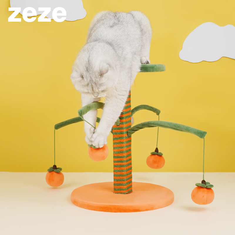 zeze好柿幸运猫抓柱猫抓板立式多功能小型猫爬架耐磨磨爪器猫玩具 好柿幸运吊球