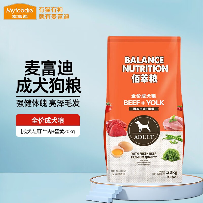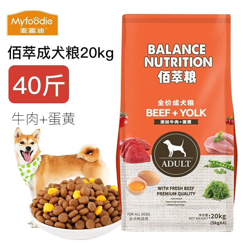 麦富迪犬粮佰萃狗粮成犬犬粮装佰萃金毛拉布拉多大型犬专用幼犬狗主粮 牛肉 蛋黄佰萃成犬粮20kg