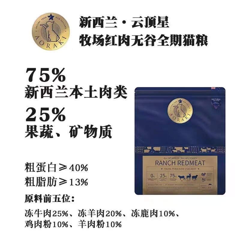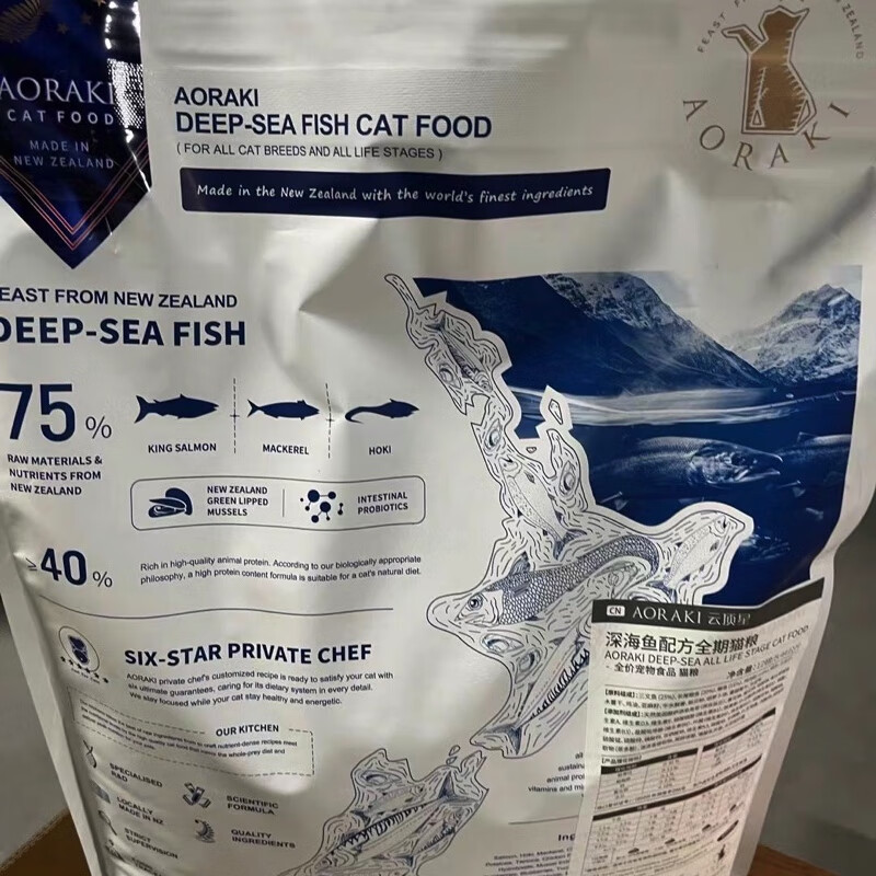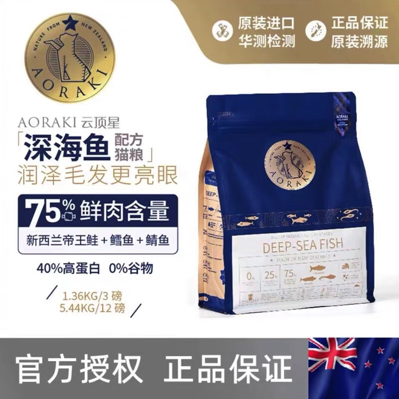云顶星猫粮红肉新西兰进口成猫幼猫4到12月通用全价aoraki无谷猫粮 深海鱼/美毛亮目 1.36kg/3磅 全价