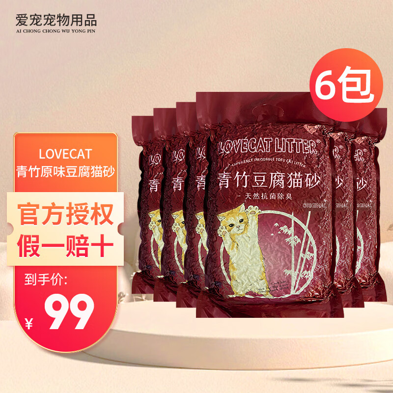 爱宠爱猫猫砂 love cat猫砂豆腐猫砂原味绿茶植物猫砂除臭易结团可冲马桶 原味青竹豆腐猫砂 5斤*6包