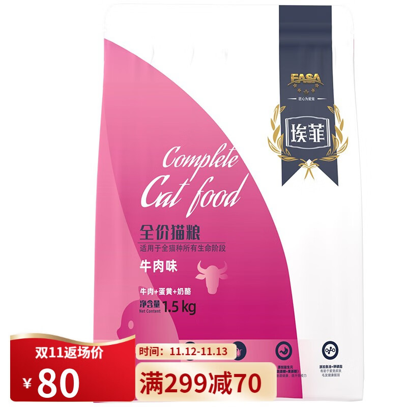 伊萨猫粮 全价天然粮成猫幼猫通用型多口味 牛肉味1.5kg