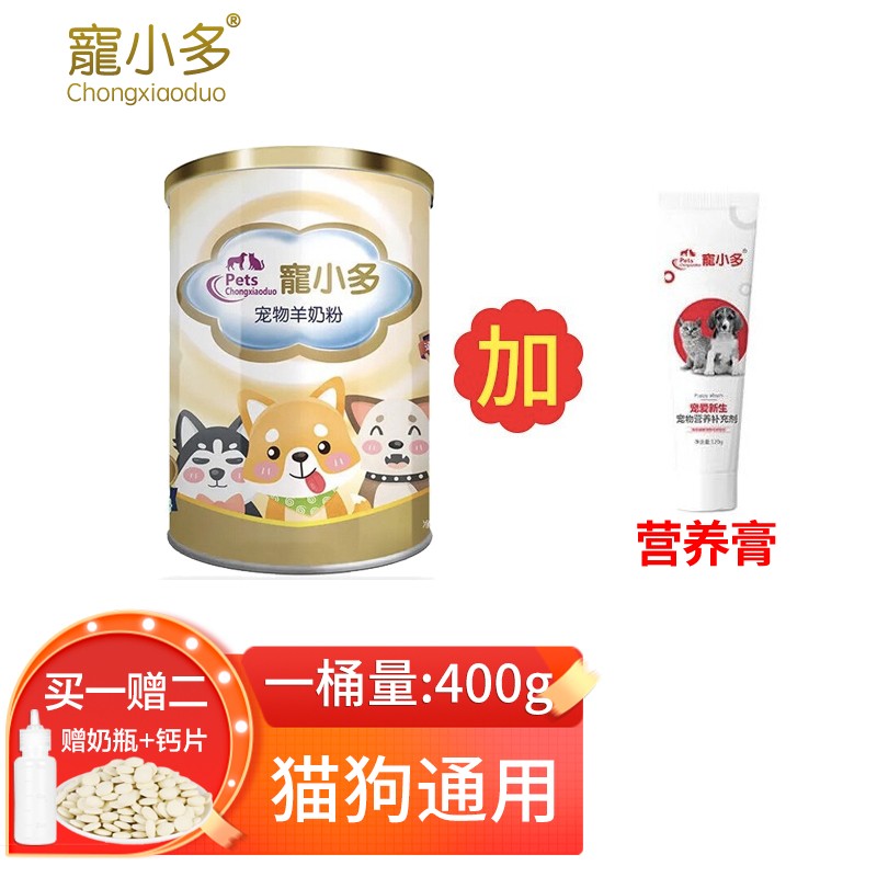 宠小多宠物羊奶粉 狗狗猫咪新生幼猫犬怀孕哺乳期羊奶粉 小猫小狗幼犬成犬专用宠物营养品 通用款400g 营养膏