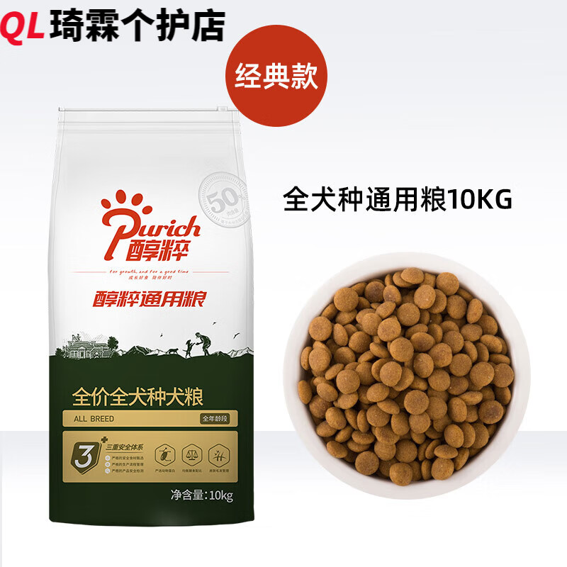 醇粹狗粮狗粮金标黑标经典10kg成犬幼犬老年犬通用无谷低敏冻干15公斤 经典-通用犬粮10kg(50%肉含量) 0kg 重量看型号说明
