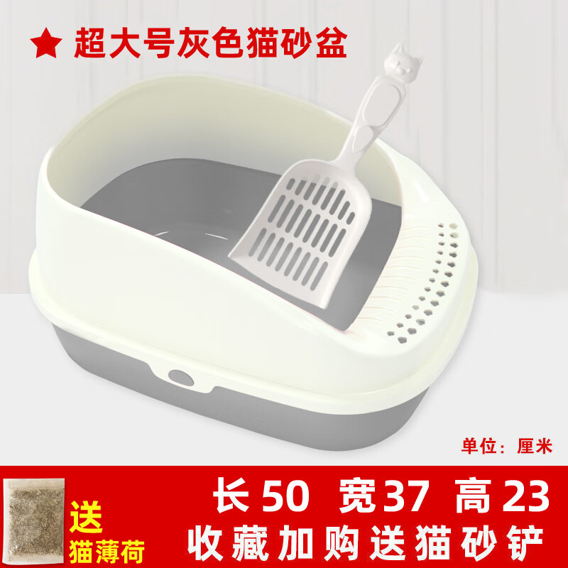 猫砂盆防外溅半封闭式猫厕所特大号超大猫沙盆防臭猫屎盆猫咪用品 【灰色超大号高围栏】收藏下单餸猫铲