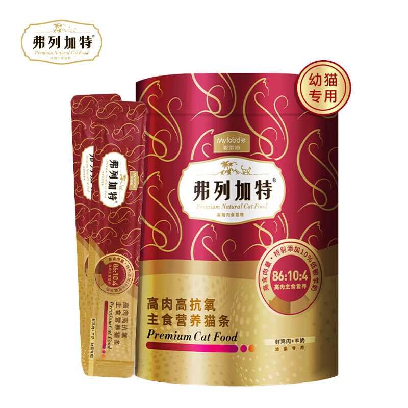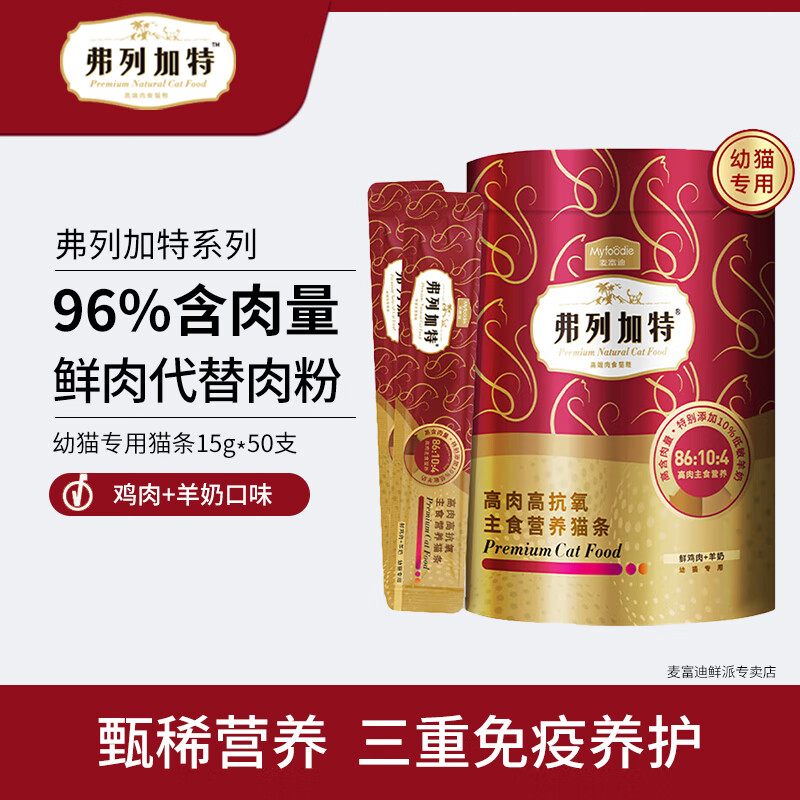 弗列加特猫零食猫条 营养猫湿粮高肉主食补水 【幼猫专用】鸡肉 羊奶15g*50支