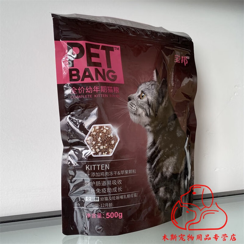 宝邦全价猫粮500g*4袋成猫幼猫妊娠哺乳期全猫种添加苹果鸡肉冻干 宝邦成猫四斤装(500g*4袋)