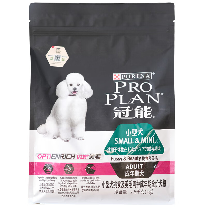 冠能(PRO PLAN)冠能狗粮5斤装挑食美毛博美泰迪比熊柯基小型犬成犬全价犬粮2.5kg 小型犬成犬挑食美毛2.5KG 以选规格为准