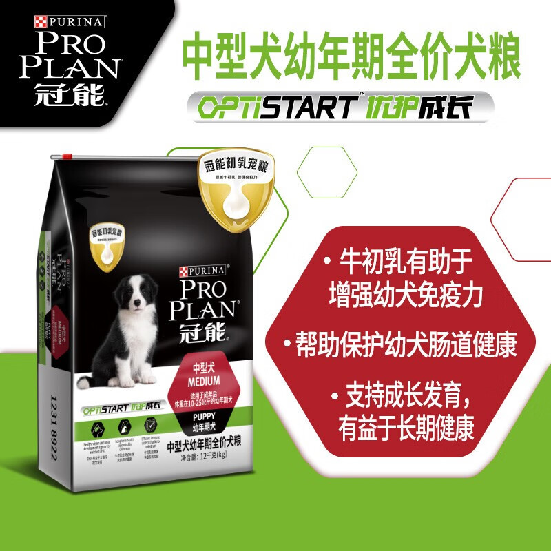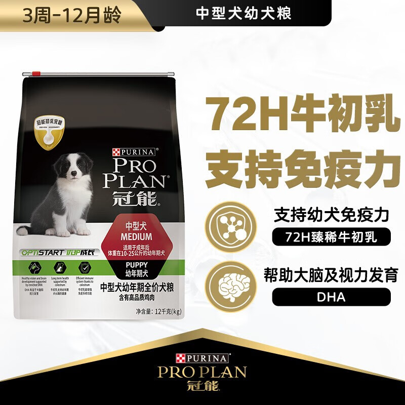 冠能(PRO PLAN)狗粮 中型犬 成犬幼犬狗粮 高消化吸收 呵护牙齿关节 幼犬粮 12kg