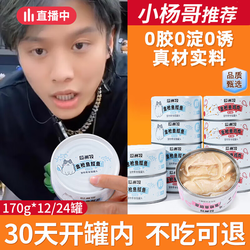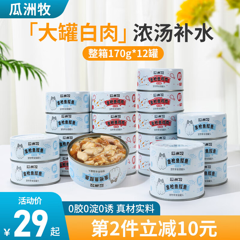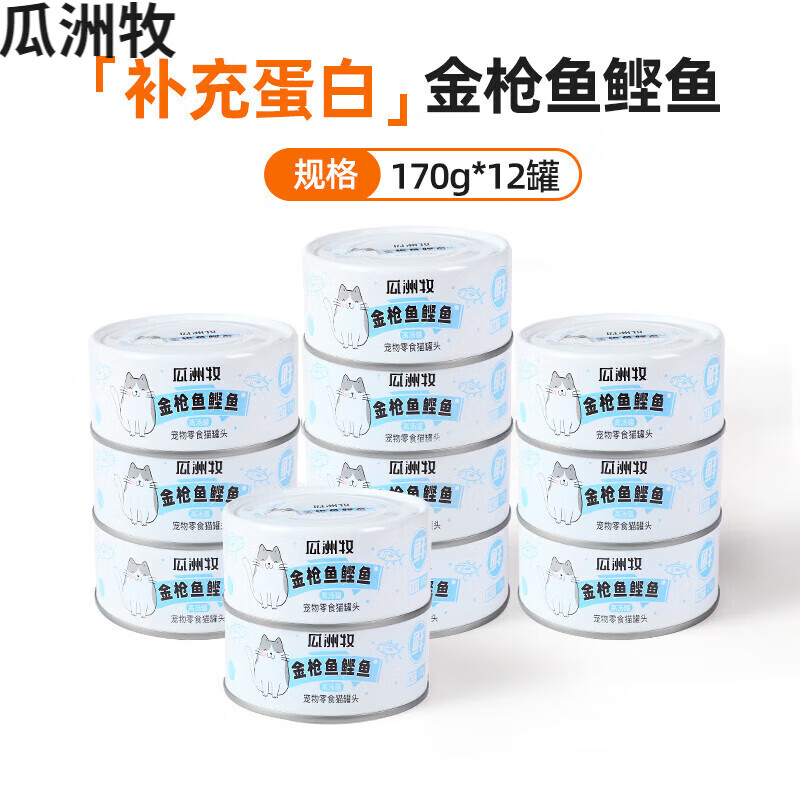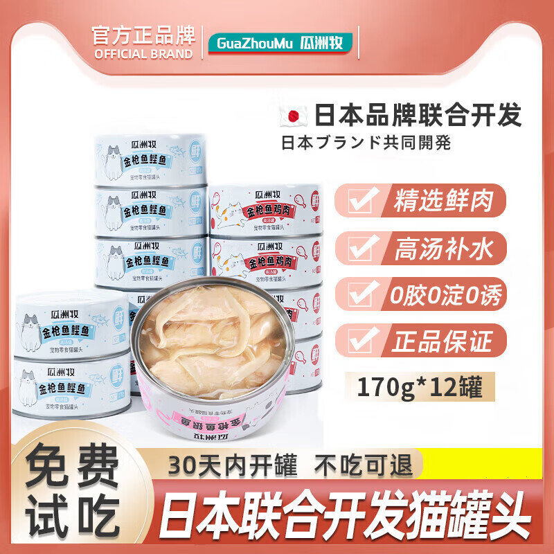 瓜洲牧猫罐头主食罐幼猫成猫咪增肥营养湿粮整箱补充无诱食剂 金枪鱼 鲣鱼升级高汤170/克/12罐