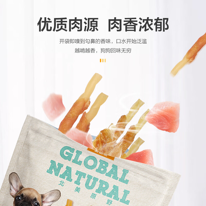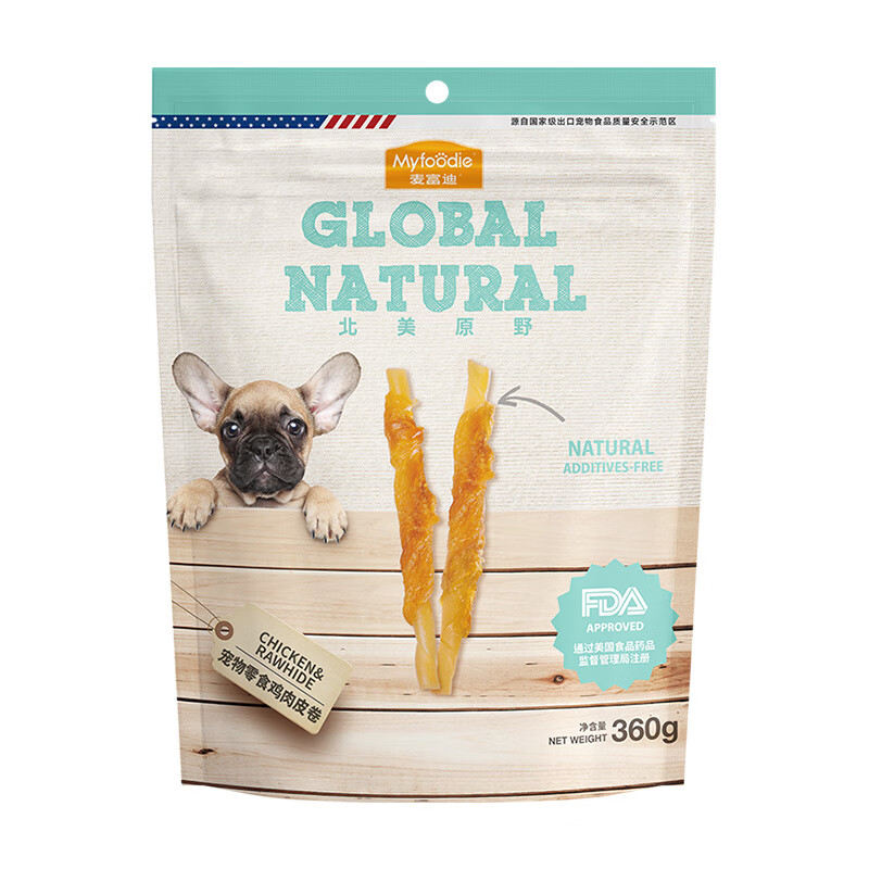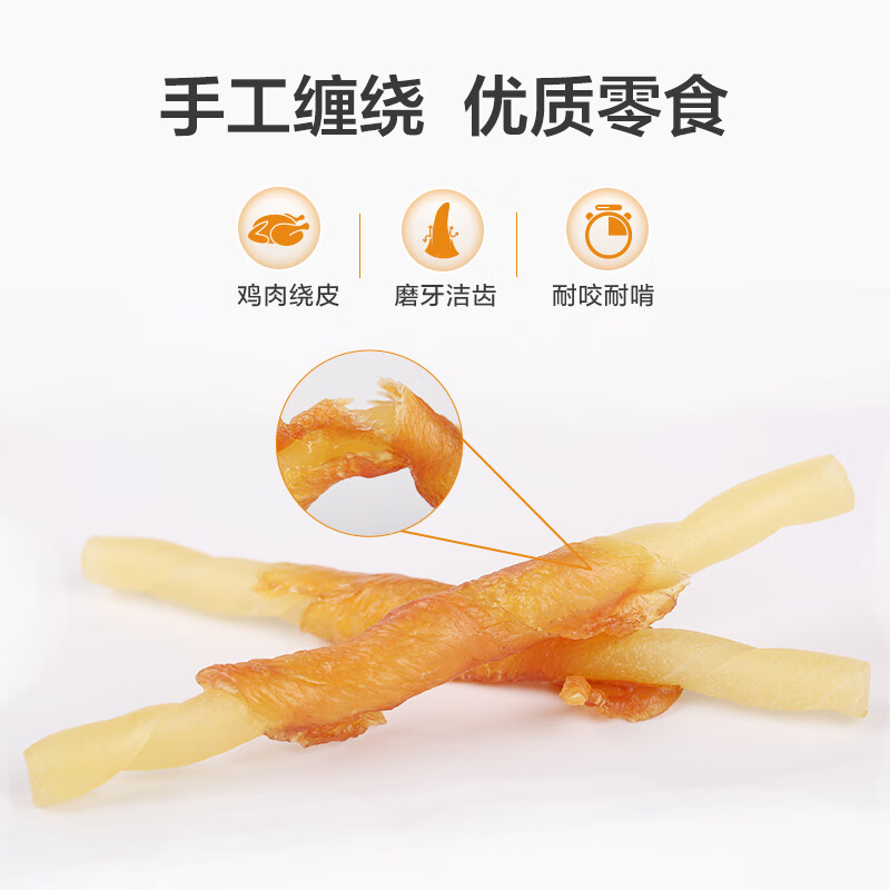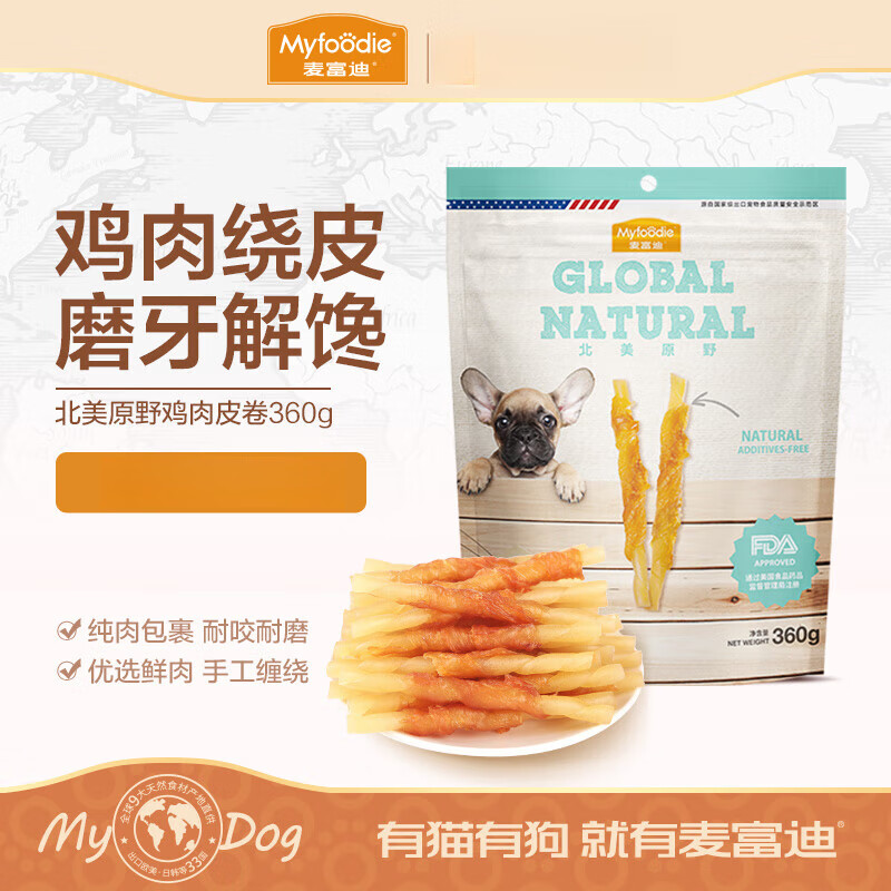 麦富迪(Myfoodie)狗狗零食磨牙棒幼犬鸡胸肉干泰迪宠物零食洁齿训狗奖励360g 北美原肉皮卷360gx1 1包以标注信息为准