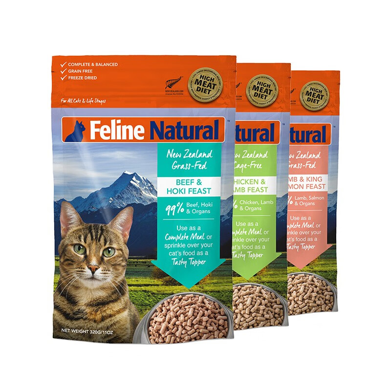 宠源新(K9 NATURAL)新西兰进口猫冻干主食猫粮全价猫主粮成猫幼猫通用型猫主粮 鸡肉/牛肉帝王鲑3口味混合发3袋