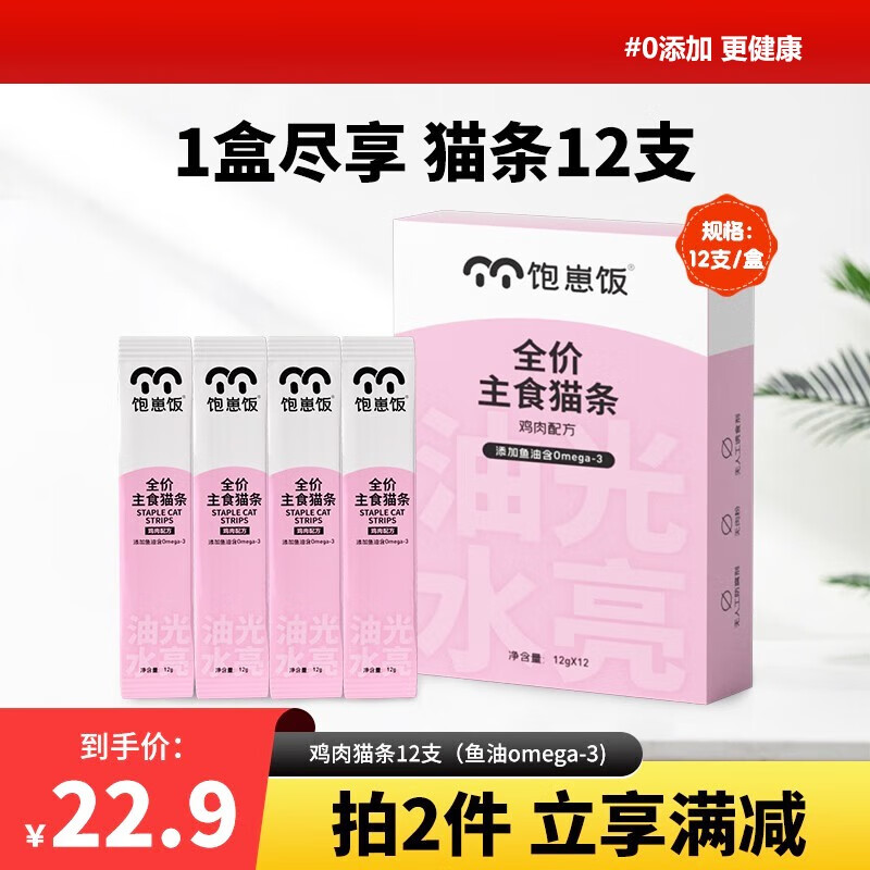 饱崽饭猫条猫零食鸡肉12g*108支成猫幼猫全阶段通用猫咪湿粮猫肉条 鸡肉猫条12支/盒