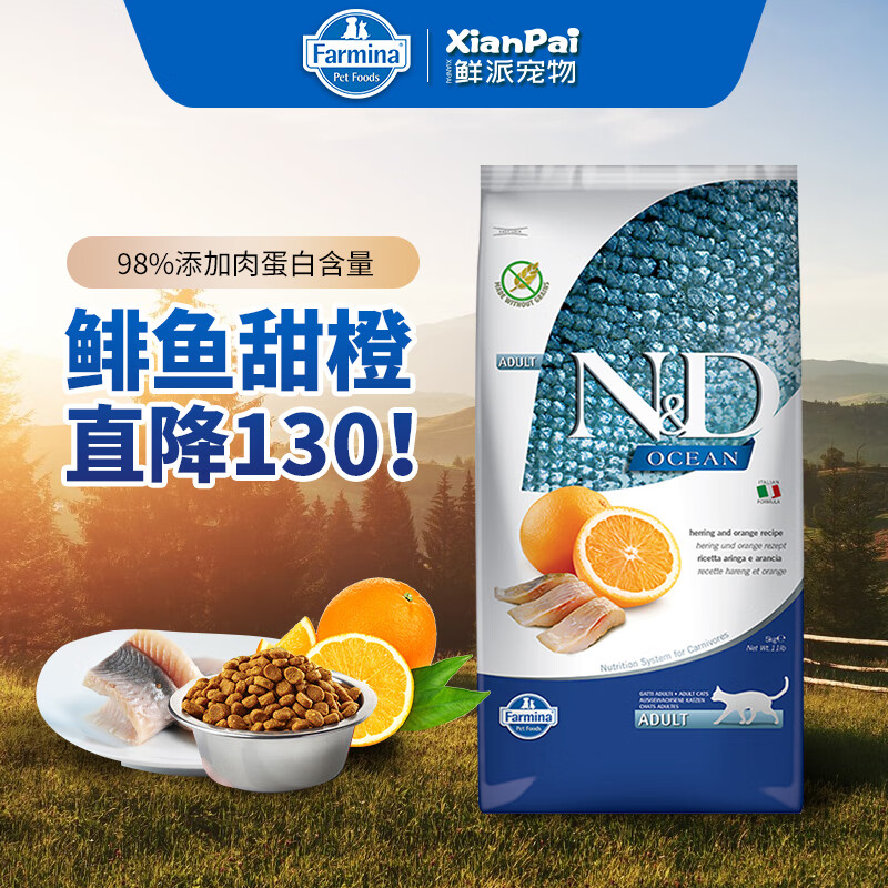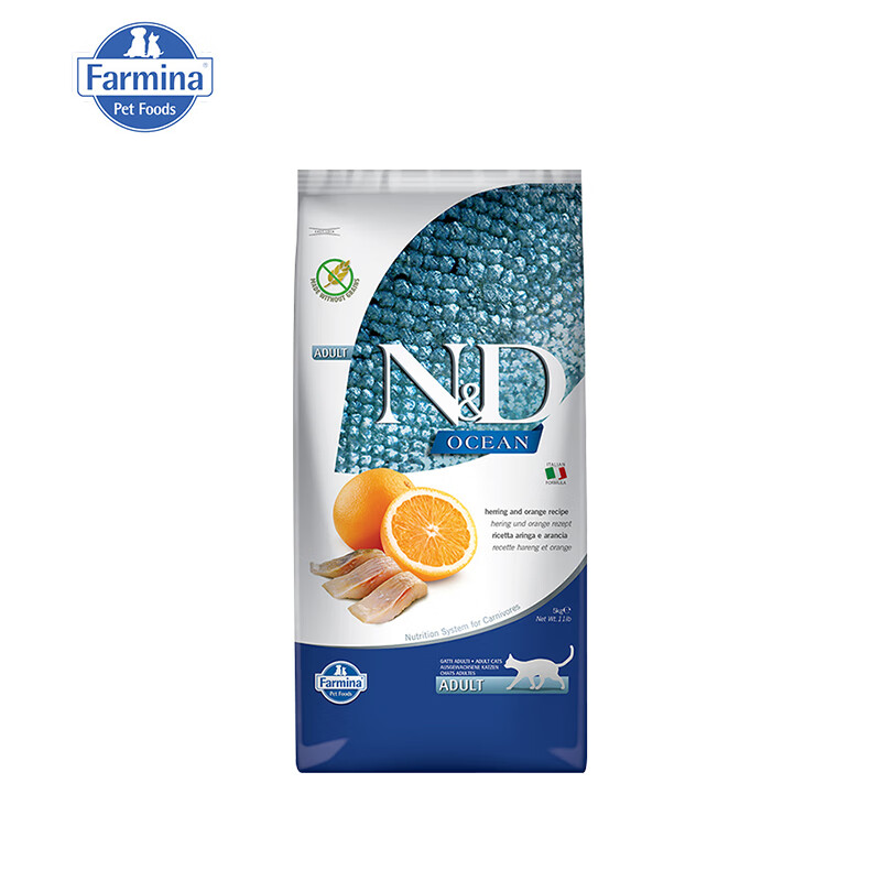 法米娜(Farmina)无谷猫粮 意大利原装进口幼成猫主粮 成猫粮|鲱鱼甜橙5kg