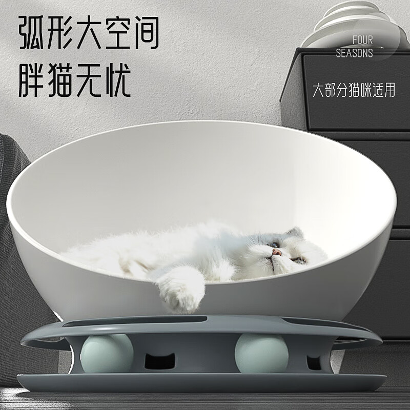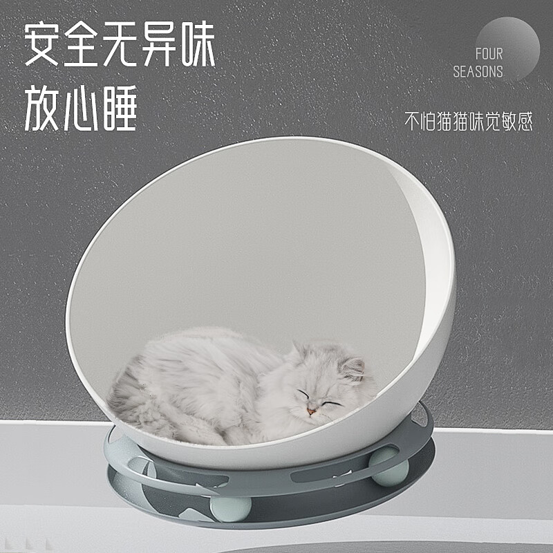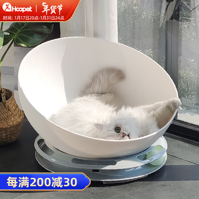 hoopet猫玩具转盘猫窝四季通用自嗨玩具球半封闭式可拆洗太空舱窝高颜值防侧翻凹碗猫咪用品 半封闭猫窝 灰色转盘 2个球 15斤内全年龄猫咪通用