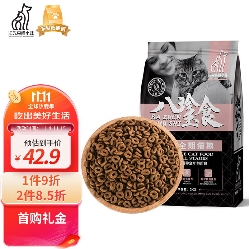 汪先森喵小妹 宠物猫幼猫成猫全猫种通用营养全期猫粮牛肉味2kg/袋