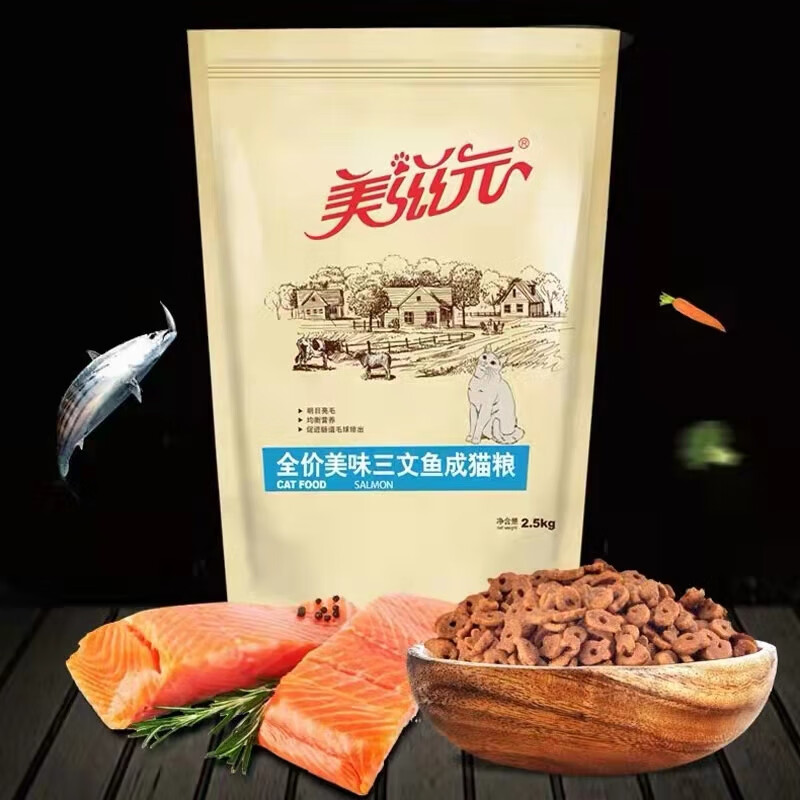 美滋元猫粮天然美味三文鱼成猫猫粮2.5kg发腮成年猫粮 三文鱼成猫5斤 2.5kg