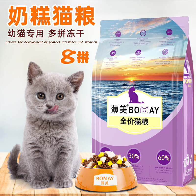 BOMAY蓝猫猫粮幼猫1-12月小猫咪专用英短增肥发腮胖脸成年猫无谷冻干粮 1斤 幼猫专用奶糕猫粮【八拼猫粮】