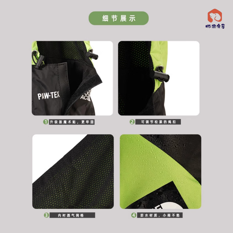 怀阁狗狗雨衣冲锋衣大狗防水雨衣狗衣服秋款防风衣宠物防雨中型犬边牧 大S春叶绿 L码(8-12斤)