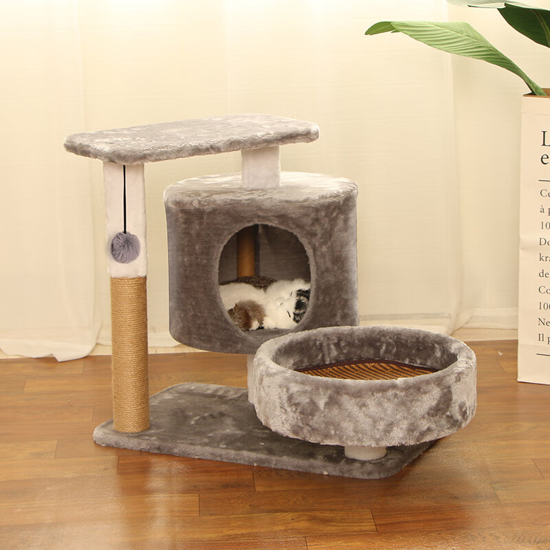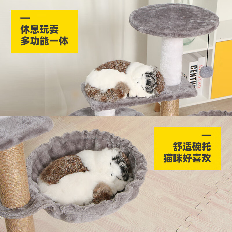 憨憨乐园大型猫爬架子猫窝猫树一体四季通用猫抓柱小型多层猫架猫咪用品 绒布秋千床款-灰色(带2窝 2跳台