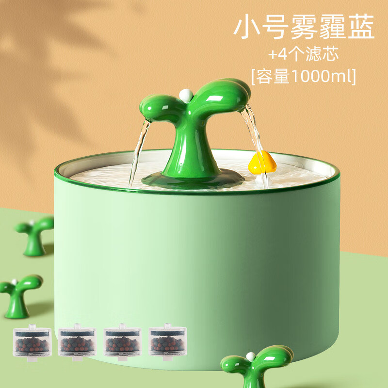 2022新款hoope猫咪饮水机猫咪饮水机流动陶瓷饮水器自动宠物活水喂水碗过滤循环喝水器用品 绿色1L升级自循环 消菌【4个滤芯装】
